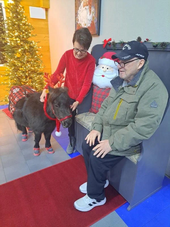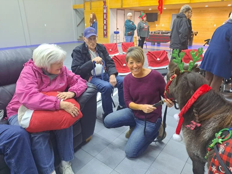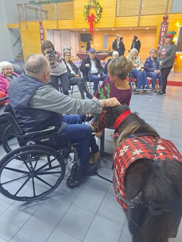 Our mini horses are brought into homes, schools, or hospitals to foster comfort, reduce stress, and create moments of meaningful connection.Seasonal & Holiday Celebrations